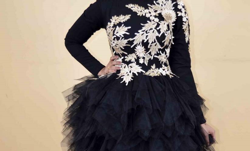 فستان سهرة للمحجبات باللون الاسود من تصميم مريم للأزياء الراقية