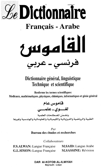 تحميل القاموس عربي فرنسي مع المصطلحات العلمية مجانا Dictionnaire Arabe Francais