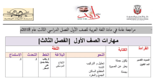 مراجعة عامة للغة العربية الفصل الثالث الصف الأول