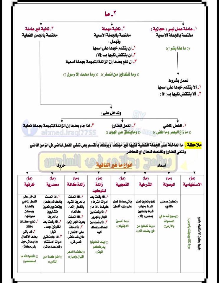 شرح جميع مواضيع قواعد اللغة العربية للصف السادس الاعدادي على شكل مخططات 2016